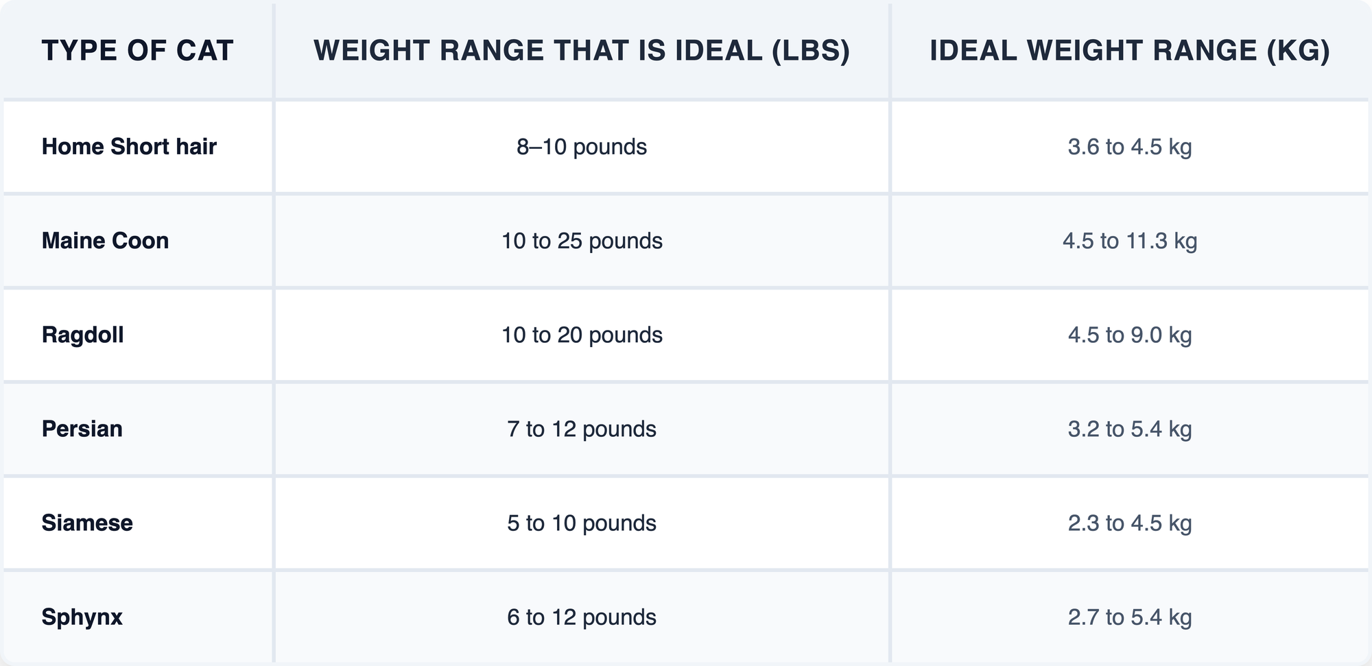 Here's a quick guide to prominent cat breeds that can help you figure out how much your cat should weigh: